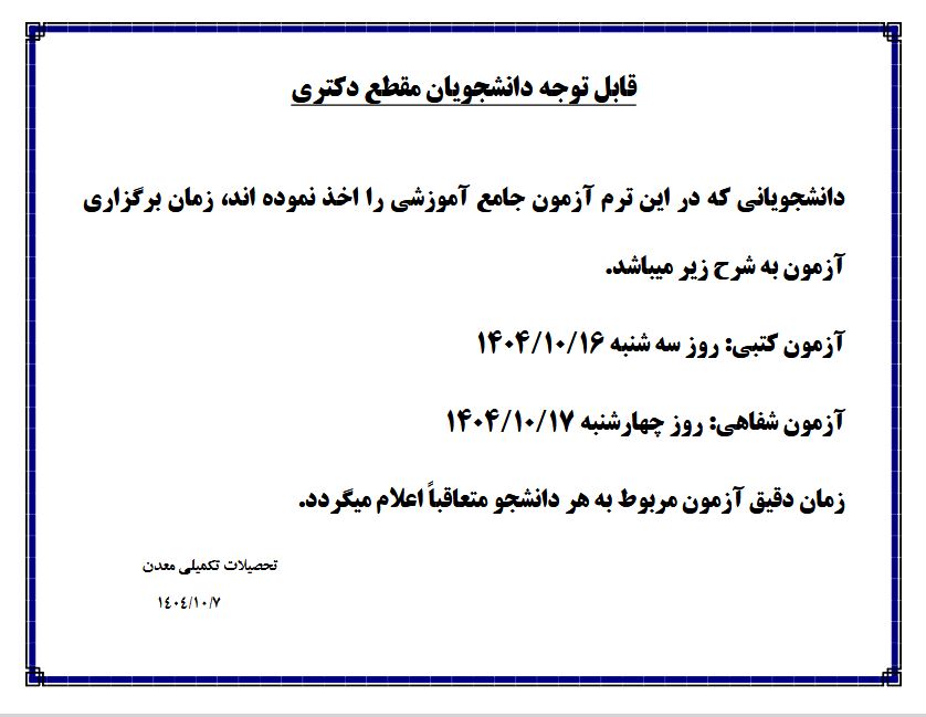 زمان آزمون جامع آموزشی
